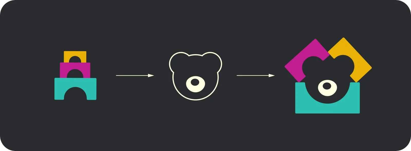 The blocks are arranged at a slight angle to give the design some character, and to balance this, the bear’s nose is aligned slightly to the left to compensate.